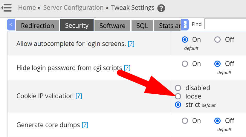 - In the Cookie IP validation strict is selected by default. Change it to loose to avoid more re-authentication or you may completely disable it.